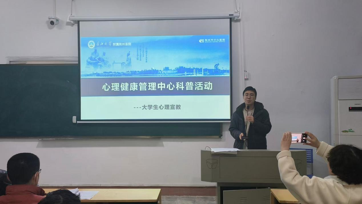 (通讯员:向睿芩)世界卫生组织明确提出:“健康不仅为疾病或羸弱之消除,而系体格、精神与社会之完全健康状态。”心理健康作为健康的核心维度之一,与生理健康相互依存、不可分割,已成为当代大学生的核心需求。为普及心理健康知识,提升学生心理调节能力,营造积极向上的校园氛围,11月30日晚,长江大学第二临床医学院特邀附属荆州医院神经内科马莉主任及其团队,开展了一场内容详实、生动实用的心理健康主题讲座。附属荆州医院学工科科长黄元奎、医院团委书记胡鹏飞及相关辅导员老师出席活动,22级全体在校生参加本次培训。