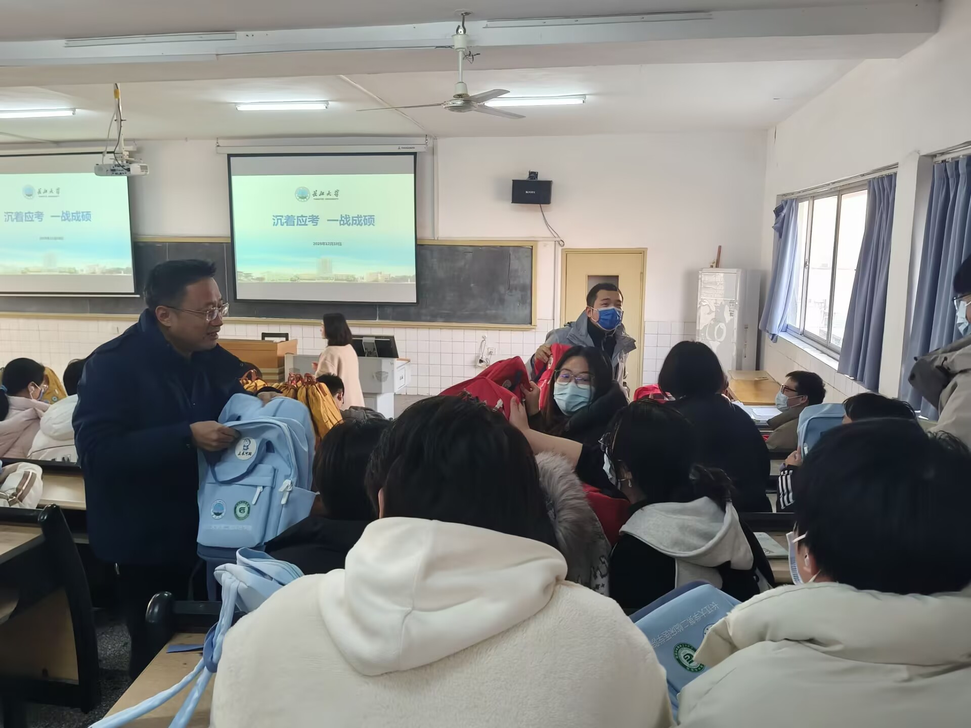 会议最后,学院为全体考研学子发放了精心准备的“考研助力包”,助力包内每一份物品都承载着学院对同学们的深切关怀与美好祝福,希望能为同学们补充能量,缓解考前压力,助力大家在考场上发挥出最佳状态。