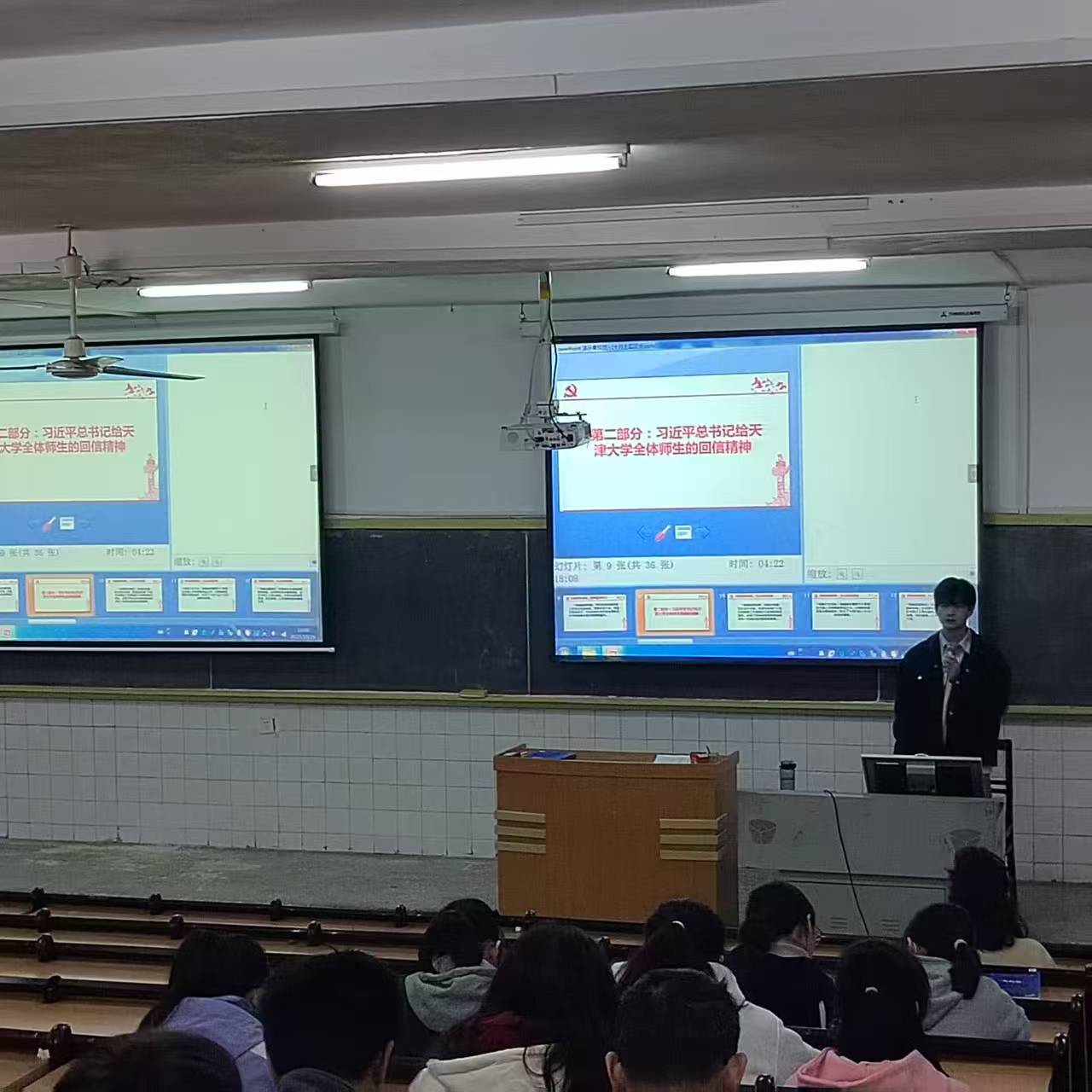 活动伊始,主讲人锜飞扬同学带领全体团员青年,系统学习了习近平总书记近期的重要讲话和重要指示批示精神。他从“国家发展”与“青年担当”两个维度切入,深入阐释了讲话精神的核心要义与实践要求。通过学习,同学们进一步增强了对国家发展道路的认同感与自豪感,明确了“强国一代”的历史坐标与前进方向。